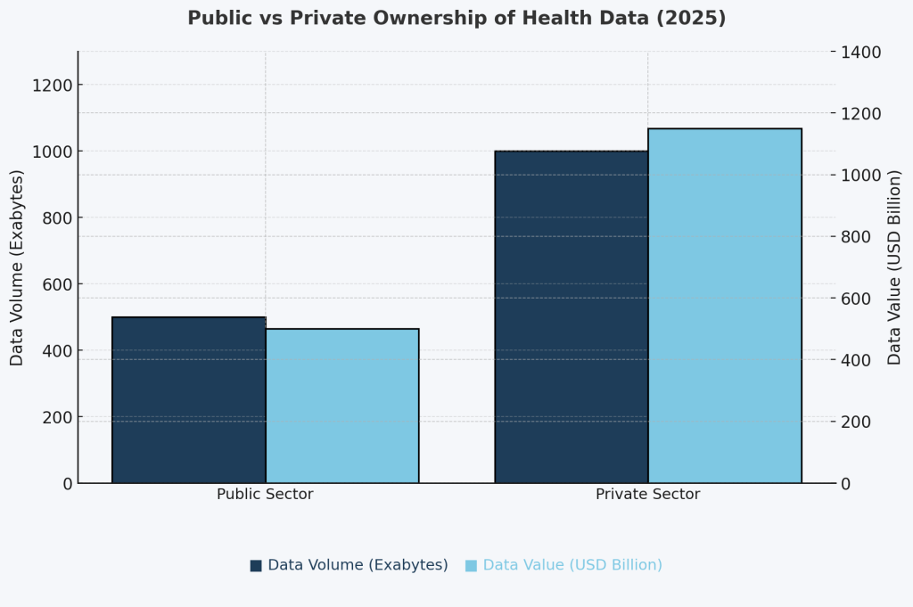 The result is a historic inversion where private platforms now hold the majority of health data in both storage volume and value: